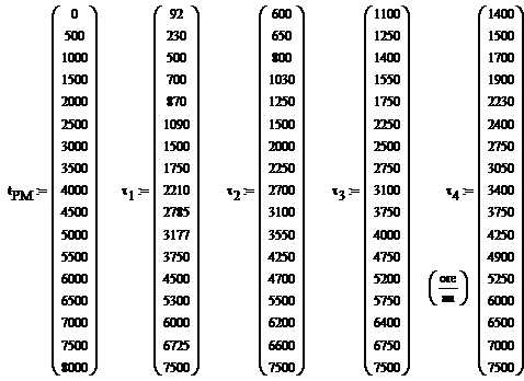 In vectori din programul Mathcad se incarca valorile cunoscute ale curbelor pentru diferite valori ale factorului de putere: