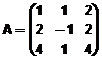 Efectuam asupra matricii A transformarile pe care le-am facut in exemplele precedente si o aducem la o forma diagonala. Ca prim pas, observam ca putem permuta coloanele 1 si 2, in scopul de a aduce pe prima pozitie din matrice elementul 1, mai usor utilizabil in calcule ca element pivot.