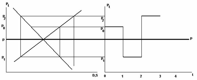 Acest pret p este pretul de echilibru stationar si poate fi interpretat ca un nivel constant al pretului catre care tinde sau nu traiectoria de dinamica a pretuli curent pt.