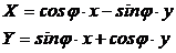 Relatia de mai sus reprezinta legatura dintre axele celor doua sisteme de coordonate. Vom inmulti relatia de mai sus cu inversul matricii de rotatie. Va rezulta: