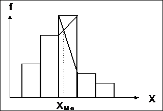 In Figura ‑ este reprezentata, cu ajutorul unei diagrame prin coloane, o distributie dupa aceasta variabila. Valoarea modala, adica valoarea pentru care se inregistreaza o frecventa maxima, este valoarea pe care am notat-o cu XMo.