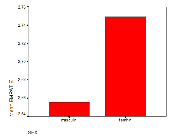 Empatie ( t(154) = 2,742, p< 0,05 = 0,007, m1= 2,75, m2 =