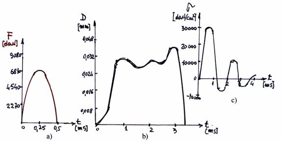 Tensiunile cele mai mari se produc la sfarsitul impactului 0,5 [msec], dupa care valoarea lor se amortizeaza in timp de 4-5 [sec].