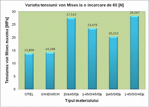 Fig.51 Variatia tensiunii echivalente maxime (Von Mises) in functie de tipul materialului
