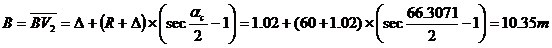 originea arcului de clotoida (Oi respectiv Oe) se gaseste fata de varful V3 la distanta: