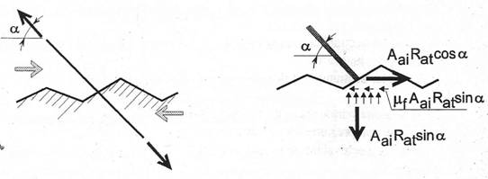 Relatia (1.130) cuprinde doi termeni care contin Aai , evidentiind dubla contributie a acestei armaturi (fig.1.68) prin 'transmiterea directa' (datorita componentei paralele cu planul de lunecare AaiRatcosά) si indirect prin efectul de frecare (datorat componentei normale de plan AaiRatsinά).