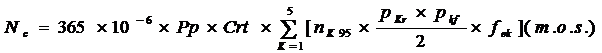 Traficul de calcul pe perioada de perspectiva Nc se exprima in mii osii standard (m.o.s.) si se stabileste pe baza structurii traficului zilnic mediu annual corespunzator postului de recenzare aferent sectorului de drum sau studiului de trafic cu relatia:
