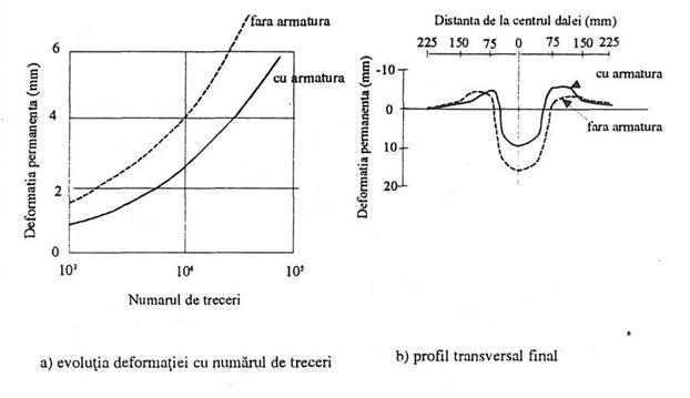 In corporarea geogrilelor in asfalt duce la imbunatatirea comportarii in exploatare prin marirea rezistentei la fisurile transmise si a celei la formarea fagaselor in straturile de suprafata (Fig.25).