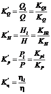 Coeficientii K Q, K H, K'p reprezinta caracteristicile la care tin seama de modificarea naturii lichidului.