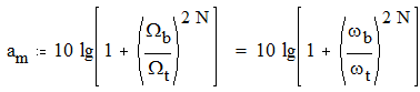 Se determina ordinul N al functiei de transfer Ha(s) a filtrului analogic si frecventa de taiere normata corespunzatoare cu relatiile