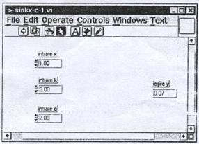 Realizarea instrumentului virtual se poate efectua in mai multe moduri. Astfel poate fi utilizata o structura de tipul ,,formula de calcul' sau numai functia ,,sinus'.