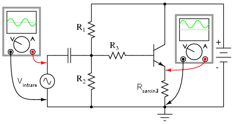 In acest caz, caderea de tensiune pe rezistorul de reactie va fi direct proportionala cu valoarea curentului prin emitorul tranzistorului, opunandu-se in acest fel influentei semnalului de intrare asupra jonctiunii baza-emitor a tranzistorului.