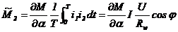 unde Rw este rezistenta totala a circuitului de tensiune (bobina 2 si rezistenta aditionala RA). In aceste conditii, cuplul activ mediu pe o perioada a curentilor este: