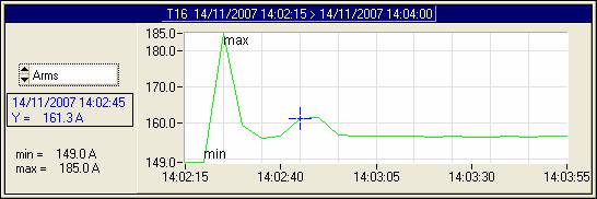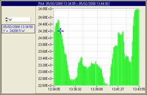 Fig. 4.89 Marimi electrice de faza inregistrate in timpul functionarii (I, P, Q, cosφ)