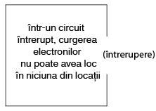 Un principiu important de retinut este ca nu conteaza locul intreruperii. Orice discontinuitate din circuit va intrerupe curgerea electronilor prin intreg circuitul. O curgere continua a electronilor prin circuit poate fi realizata doar daca exista un drum (cale) continuu si neintrerupt printr-un material conductor prin care acestia sa se poata deplasa.