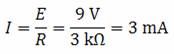 Acum avem toate informatiile necesare pentru calcularea curentului prin circuit, deoarece avem tensiunea intre punctele 1 si 4 (9 volti), precum si rezistenta intre punctele 1 si 4 (18kΩ):