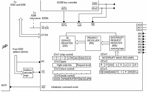 Sistemul de intreruperi al unui calculator este dependent de circuitul PIC 8259A (Programmable Interrupt Controller), a carui schema bloc este prezentata in Fig. 3.7.
