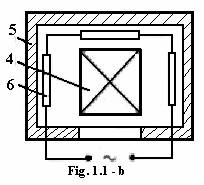 In cazul in care (fig. 1.1 - b) energia degajatǎ de rezistor se transmite prin convectie si radiatie incǎrcǎturii, cuptorul este de tipul cu rezistoare cu incǎlzire indirectǎ. De aici fac parte si cuptoarele cu bǎi de sǎruri, cuptoarele de incǎlzire cu strat pseudofluidizant, cuptoarele de topire sub strat de zgurǎ, instalatiile de incǎlzire si uscare cu radiatii infrarosii etc.