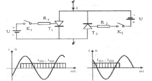 Cele doua tiristoare astfel legate formeaza un intrerupator de curent alternativ