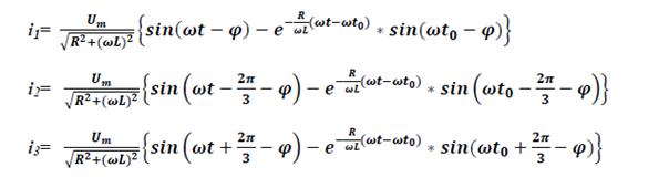 Daca cele trei faze se conecteaza in momentul t0 curentii de faza vor fi: