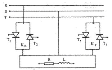 Fig. 4.17.a. Intreruptor static trifazat cu tiristor si dioda montate in antiparalel