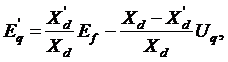 Tensiunea aleasa pentru a fi folosita in spatele reactantei tranzitorii X'd se exprima prin componentele sale dupa axele (d) si (q) astfel:
