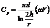 - raza conductorului, l -lungimea conductorului, d = 2h,