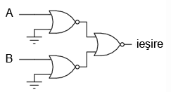 In figura alaturata este prezentat modul de realizare a acestei functii folosind porti logice SI-negat si SAU-negat.