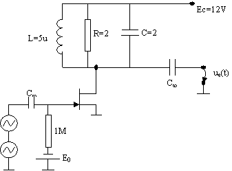 L=0,5mH, R=5KW, C=2 nF, RE=1KW