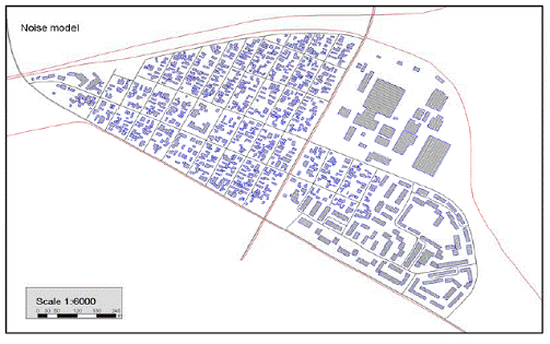 Harta de zgomot a fost realizata in programul LimA, care este capabil sa preia date din programele dedicate GIS, sau din AutoCAD prin intermediul formatului de fisiere DXF.