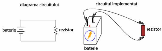 Daca dorim realizarea unui circuit simplu cu o sigura baterie si un singur rezistor, putem foarte bine sa utilizam conductori cu cleme (crocodil/banana).