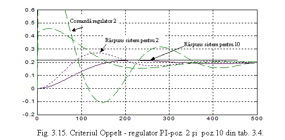 Daca se face un artificiu de calcul si se inlocuiesc cele doua constante de timp mari cu una singura T1=80+100=180, conform aceluiasi criteriu , rezulta un regulator PI cu functia de transfer (3.12), iar raspunsul sistemului in circuit inchis este prezentat in figura 3.13.