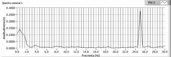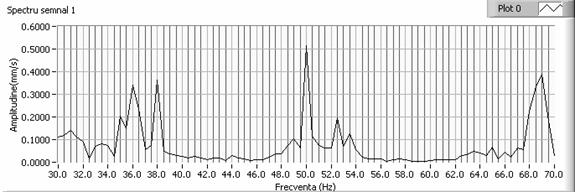 Masuratorile au constat in evaluarea globala si inregistrarea semnalelor de vibratii ( pe intervalul Dt = 10 s) in programul LABview, corespunzator vitezei si deplasarii. In lucrarea s-au dat semnalele in timp real al celor doi parametri inregistrati.