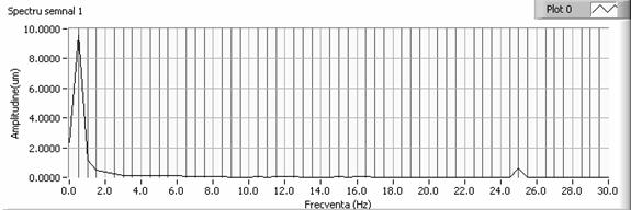 - in ceea ce priveste deplasarile, cel mai mare aport in valoarea globala il are frecventa de rezonanta a constructiei, respectiv 0,6 Hz. Aceasta frecventa se regaseste in unda purtatoare caracteristica intregului planseu de sprijin al grupului TG, evidenta in diagramele in timp real ale vibratiilor;