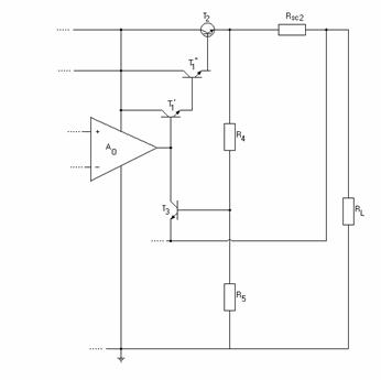 limitarea la o valoare fixa a curentului de iesire (prin deschiderea unui tranzistor din circuitul de protectie atunci cand curentul de iesire depaseste aceasta valoare),