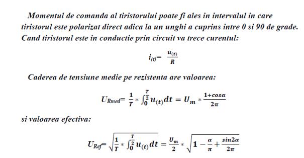 Pentru diverse valori ale unghiului de aprindere al tiristorului se va studia