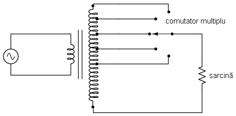 Daca in schimb, nu avem neaparata nevoie de o separare electrica a circuitelor, un efect similar poate fi obtinut si prin utilizarea prizelor in diferite puncte ale infasurarii secundare, precum in figura alaturata.