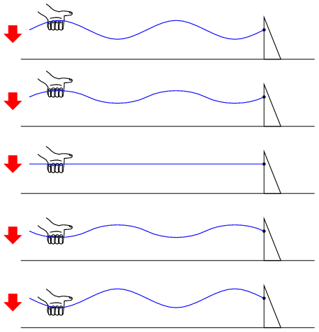 Atat nodurile (punctele unde vibratia este foarte mica sau inexistenta), cat si anti-nodurile (punctele unde vibratia este maxima) raman fixe de-a lungul corzii. Efectul este si mai pronuntat cand capatul liber este miscat la frecventa corecta. Corzile fixe prezinta acelasi comportament. Diferenta majora este ca aceasta vibreaza la frecventa sa "corecta" pentru maximizarea efectului undelor stationare.