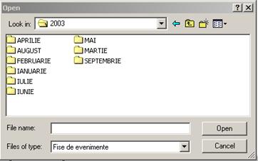 Fisa de evenimente permite vizualizarea unei fise de evenimente salvate pe disc (§ 2.3.1.2.4.5.)