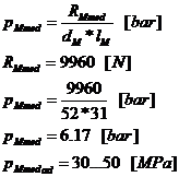dM [mm] - diametrul exterior al fusului maneton (a fost adoptat la calculul capului bielei)