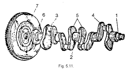 1 - capatul liber al arborelui cotit; 5 - contragreutati