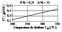 PT [ g / kWh ] = a ( % A ) + b ( T90 ) + c ( % S ) + d, cu a, b, c, d - coeficienti de regresie.