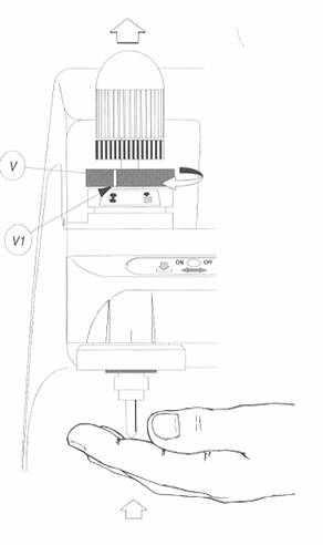 cu grija intoarceti masina pe partea cu maneta (I) (observati ilustratia)