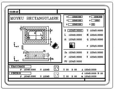 In zona 7 sunt afisate infamatii legate de coordonatele instantanee ale sculei, viteza de avans F si turatia S.