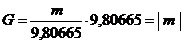 Astfel, daca se porneste de la relatia (1.17), in Sistemul tehnic, forta de greutate a unui corp cu masa "m" kg ia valoarea:
