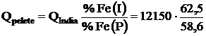 Corespunzator acestei cantitati de fonta se va scoate din unitatea de incarcare o cantitate de minereu India: