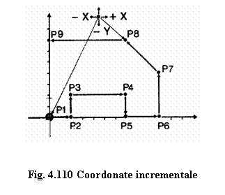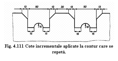 Programarea cotei incrementale este avantajoasa atunci cand anumite contururi partiale la o piesa se repeta de mai multe ori si sectiunile asociate pot fi folosite de mai multe ori fara schimbul unei coordonate (vezi fig. 4.111)