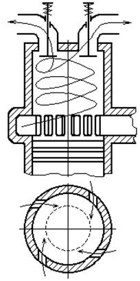 Presiunea fluidului motor proaspat este marita de regula cu suflante sau prin miscarea pistonului in faza de deplasare de la PMI la PME.