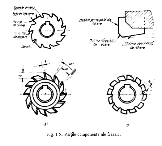 Aceste freze au dintii dispusi pe partea cilindrica a frezei. Dintii pot fi frezati asa cum se prezinta in figura 1.54a, sau cu dinti montati ca in figura 1.54b.