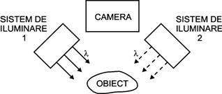 "Vederea stereo" se bazeaza pe corelarea imaginilor 2-D ale obiectului luate de doua camere diferite in aceleasi conditii de iluminare (tehnica de decalaj figura 7.28) sau pe corelarea imaginilor luate de camera in conditii diferite de iluminare (tehnica fotometrica figura 7.29).